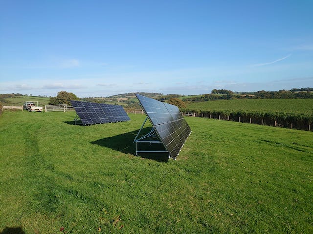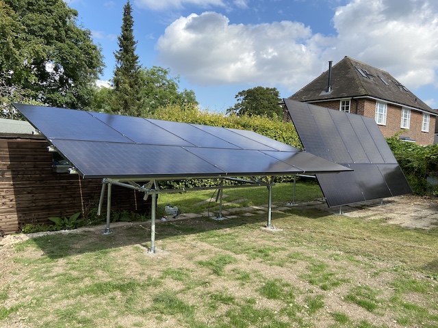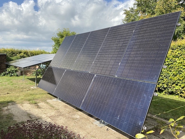 A seasonally adjustable ground mounted solar frame produced and installed by Solar Frames South West Ltd
